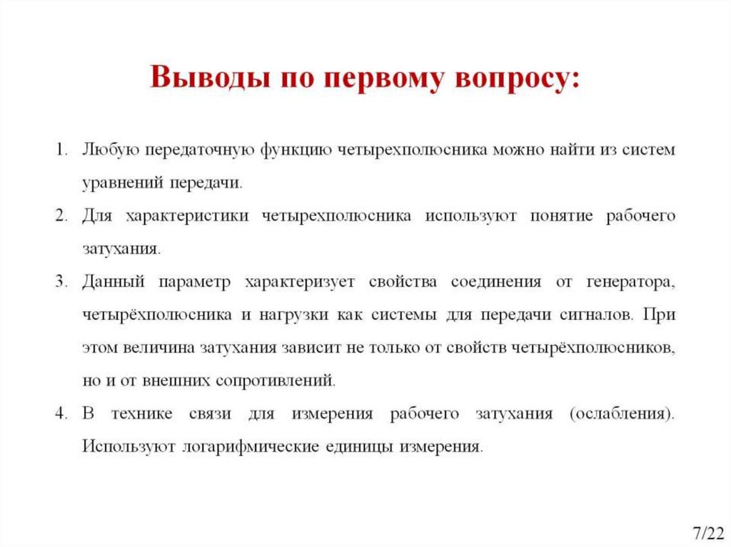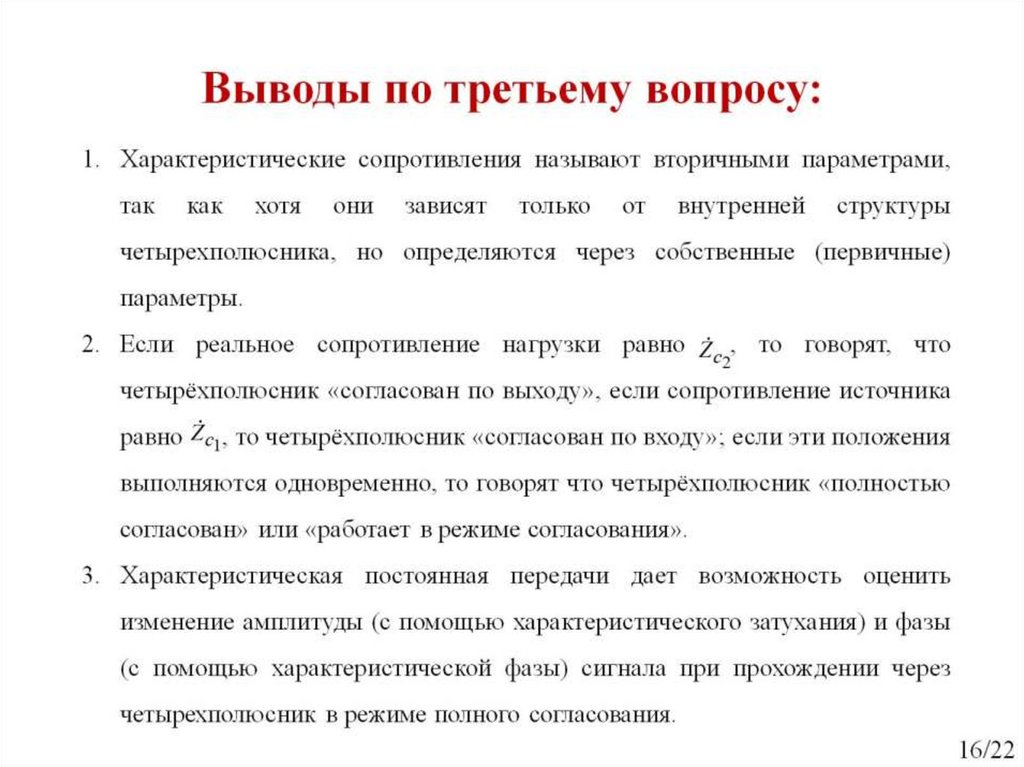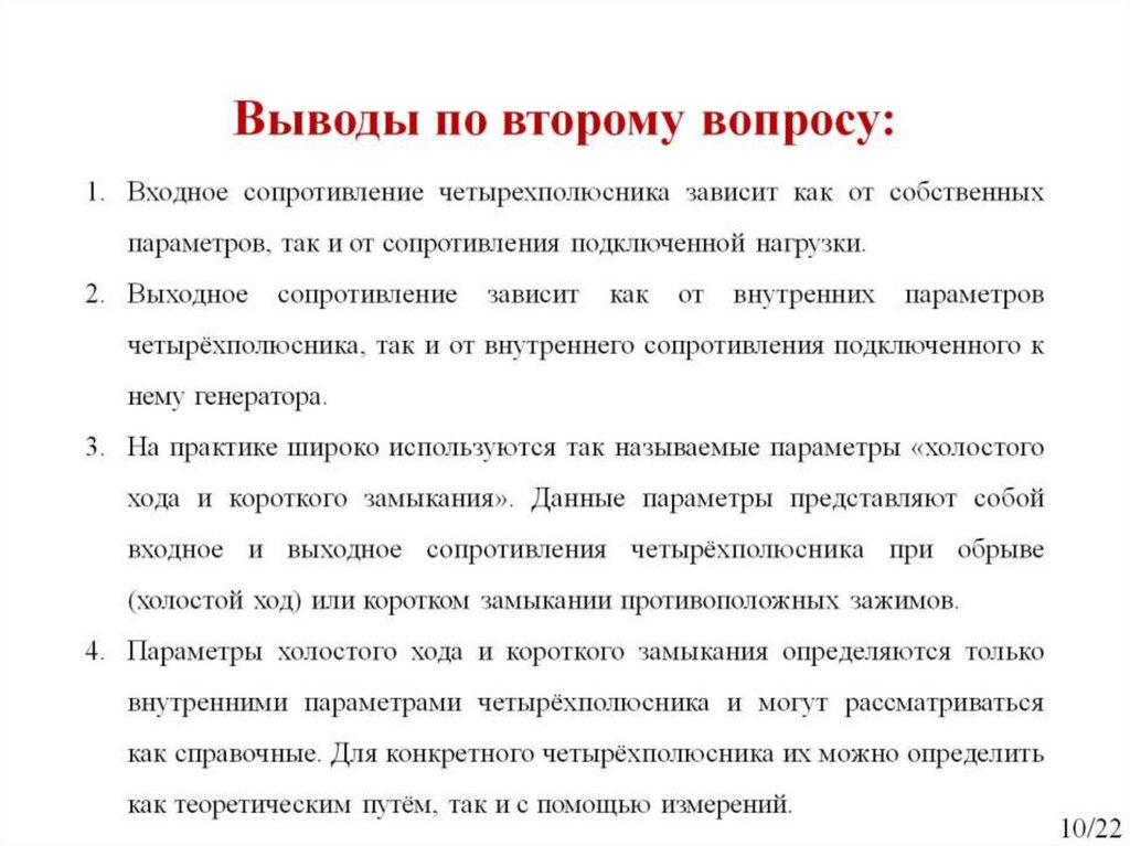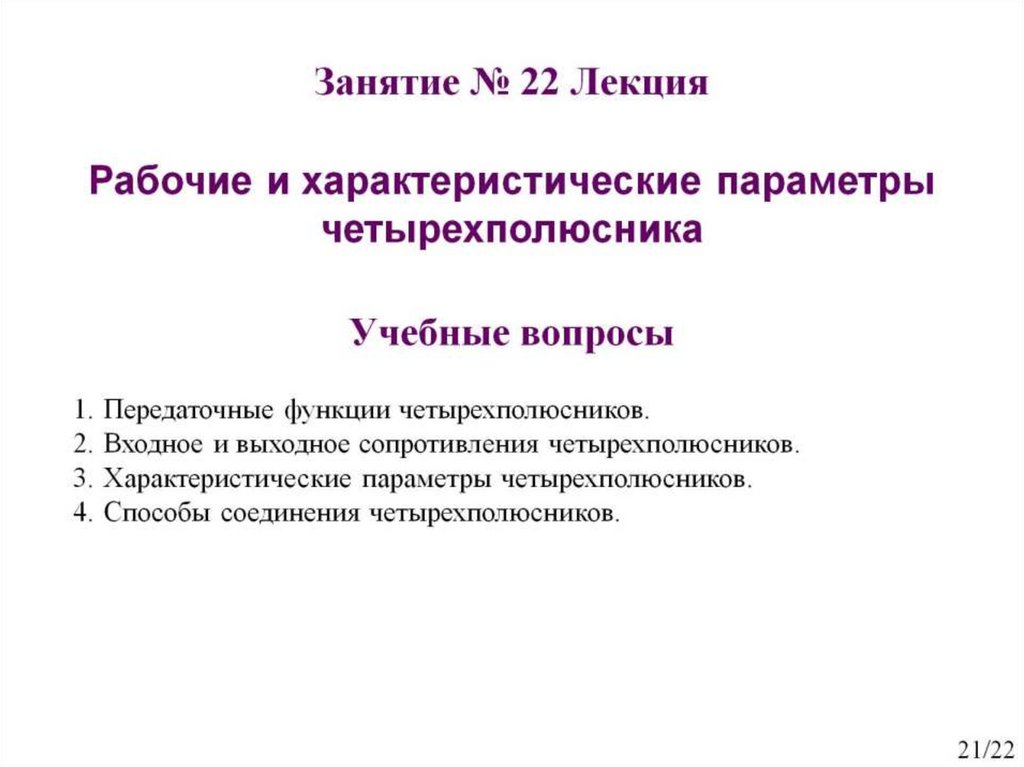 Рабочие и характеристические параметры четырехполюсника. Занятие №22