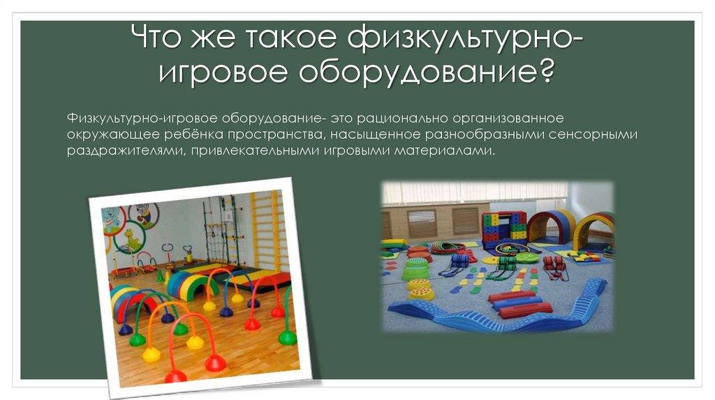 Что же такое физкультурноигровое оборудование?Физкультурно-игровое оборудование- это рационально организованное