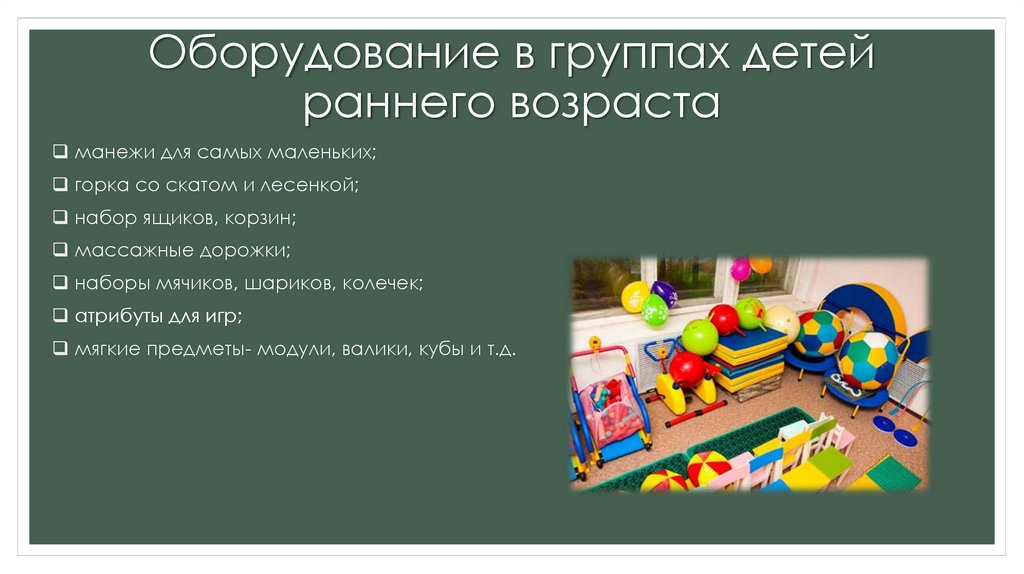 Оборудование в группах детейраннего возраста
