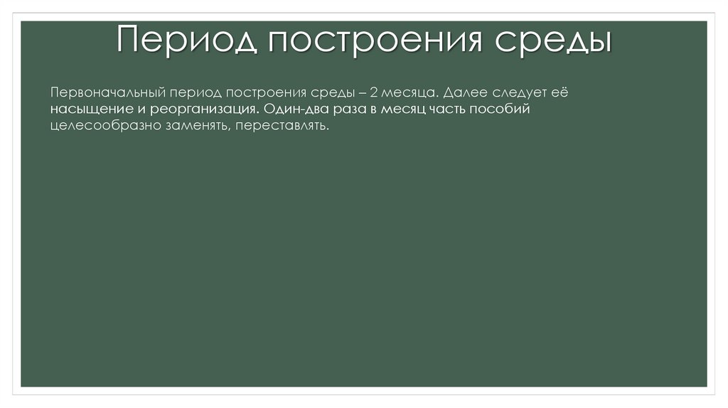 Период построения средыПервоначальный период построения среды – 2 месяца. Далее следует её