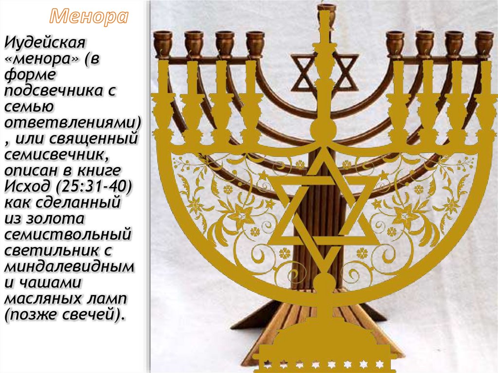 Иудейская «менора» (в форме подсвечника с семью ответвлениями)