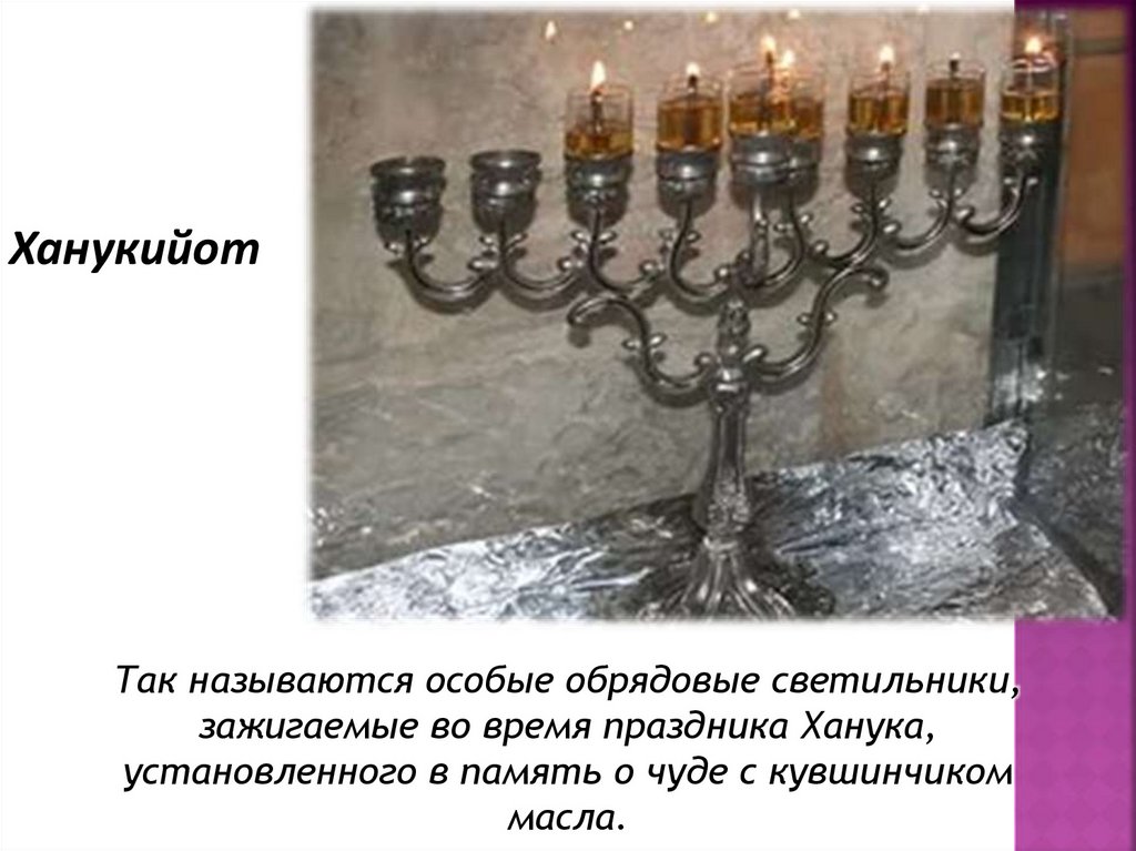 ХанукийотТак называются особые обрядовые светильники,