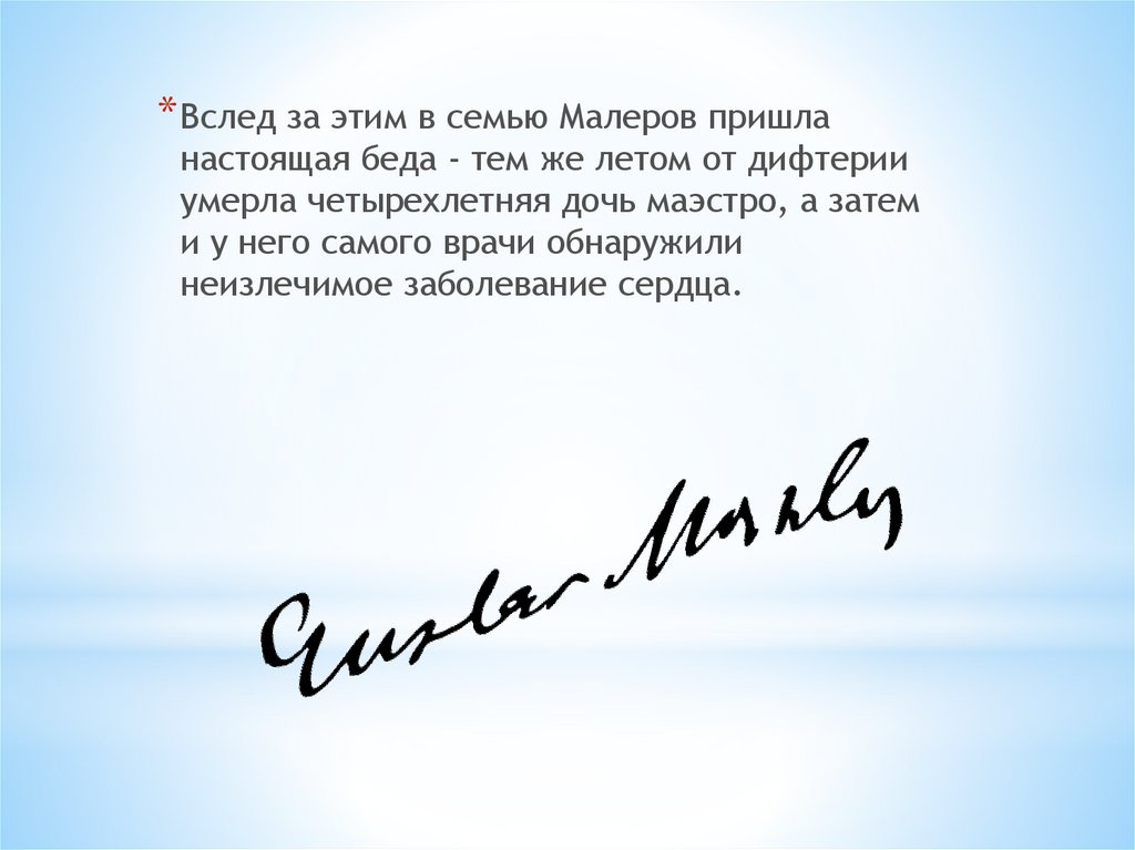 * Вслед за этим в семью Малеров пришланастоящая беда - тем же летом от дифтерии