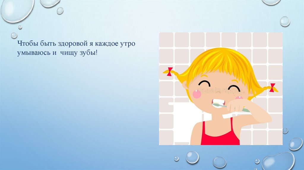Чтобы быть здоровой я каждое утроумываюсь и чищу зубы!