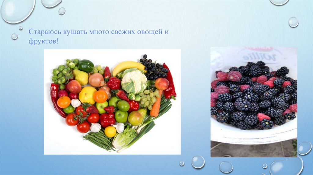 Стараюсь кушать много свежих овощей ифруктов!