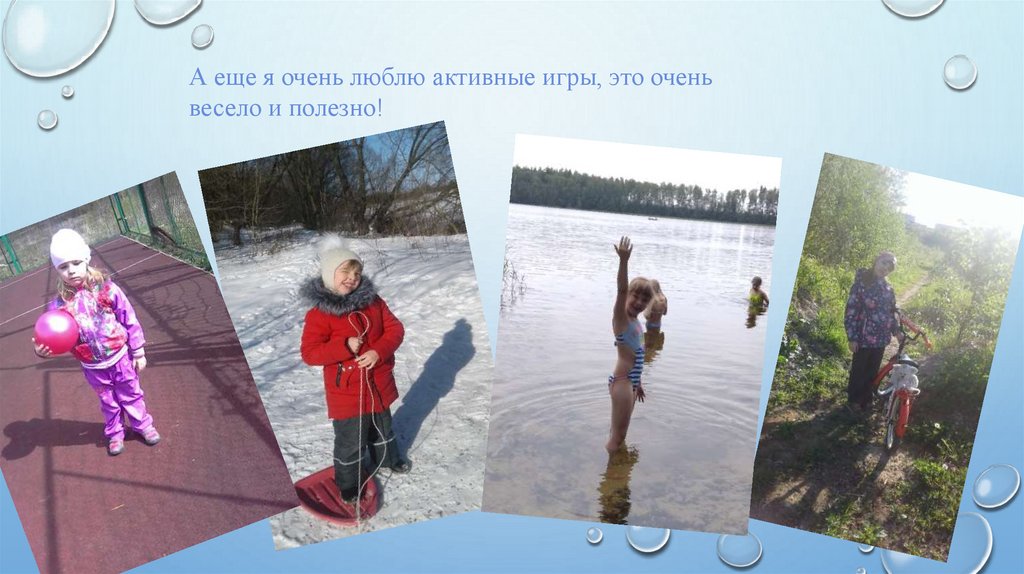 А еще я очень люблю активные игры, это оченьвесело и полезно!
