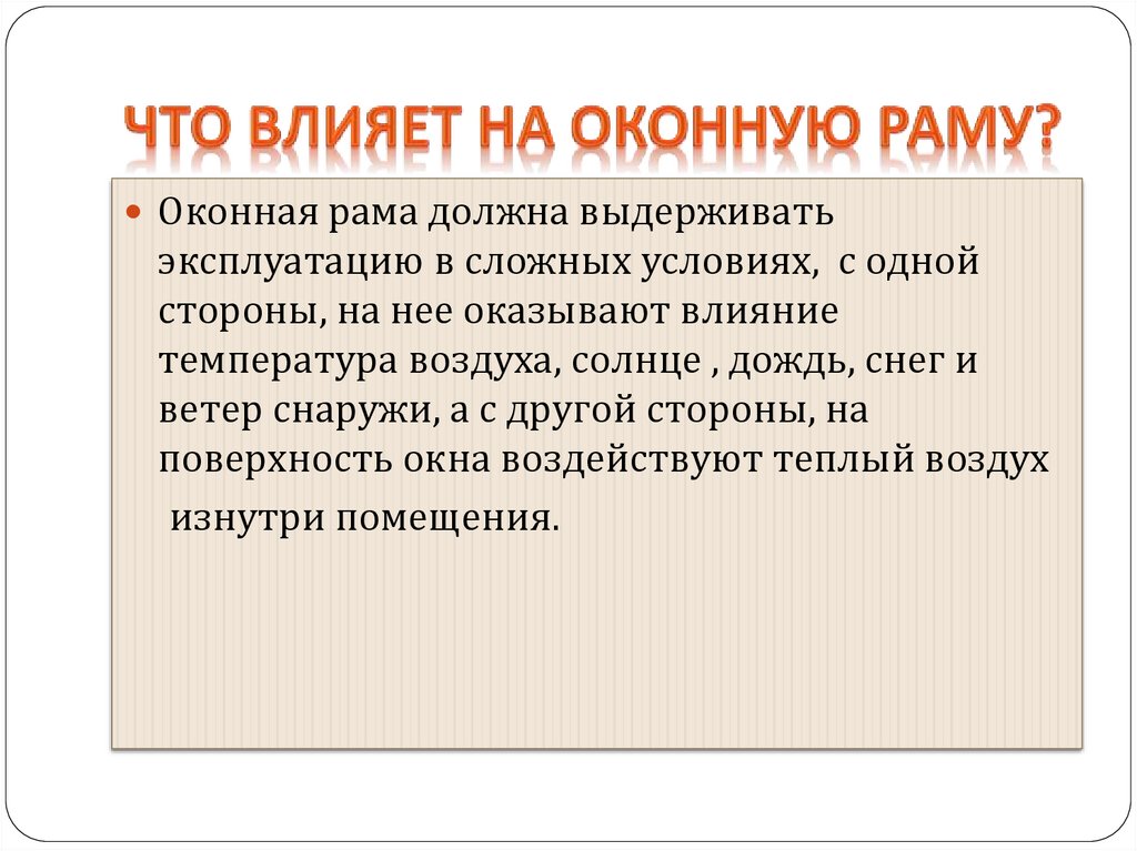 Оконная рама должна выдерживатьэксплуатацию в сложных условиях, с одной