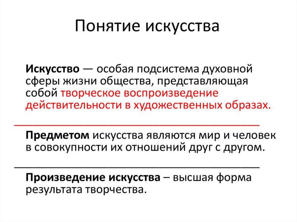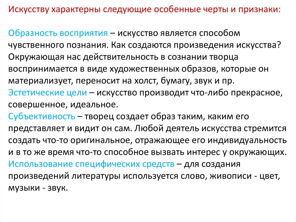 Искусству характерны следующие особенные черты и признаки:Образность восприятия – искусство является способом