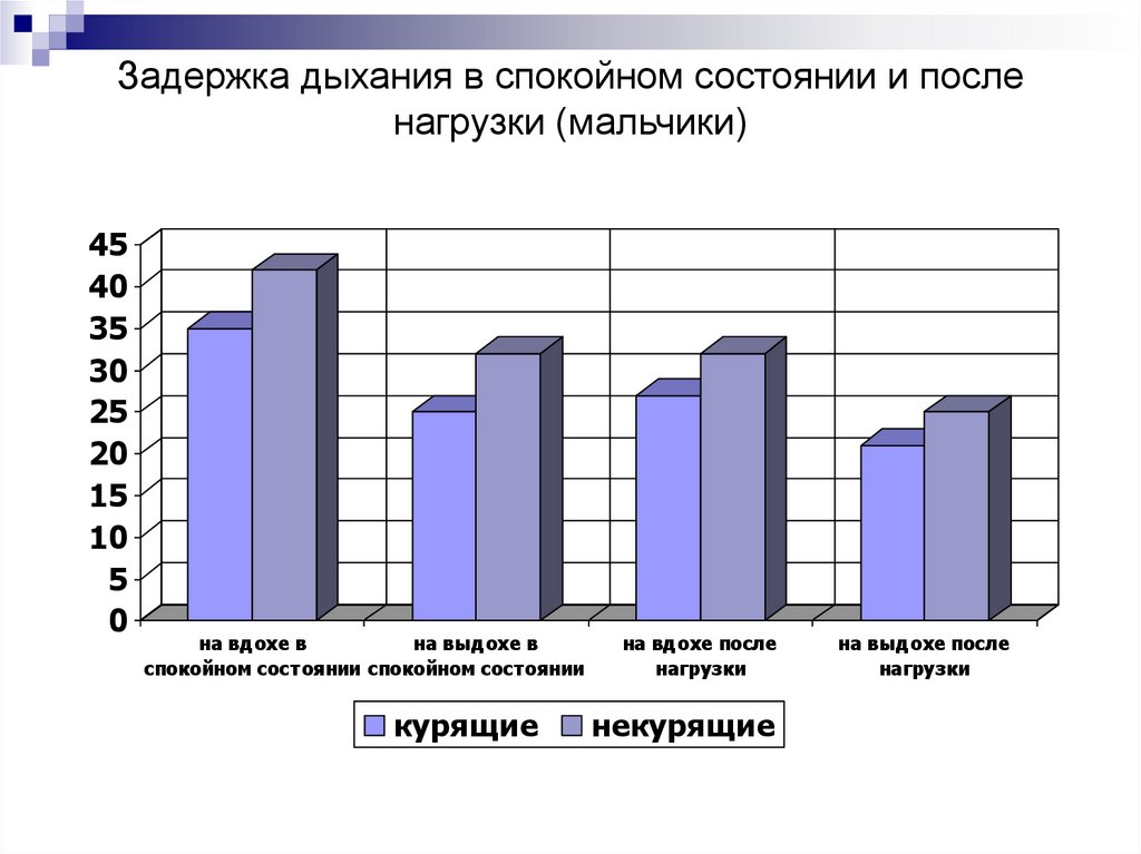 Задержка дыхания в спокойном состоянии и посленагрузки (мальчики)