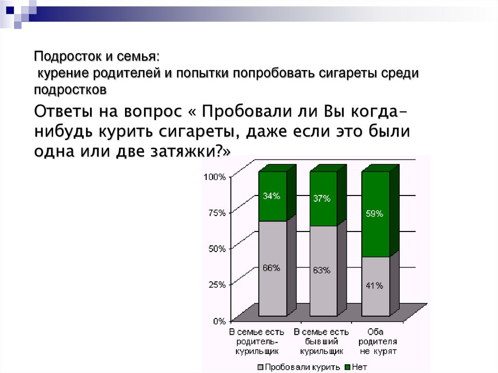 Подросток и семья:курение родителей и попытки попробовать сигареты среди