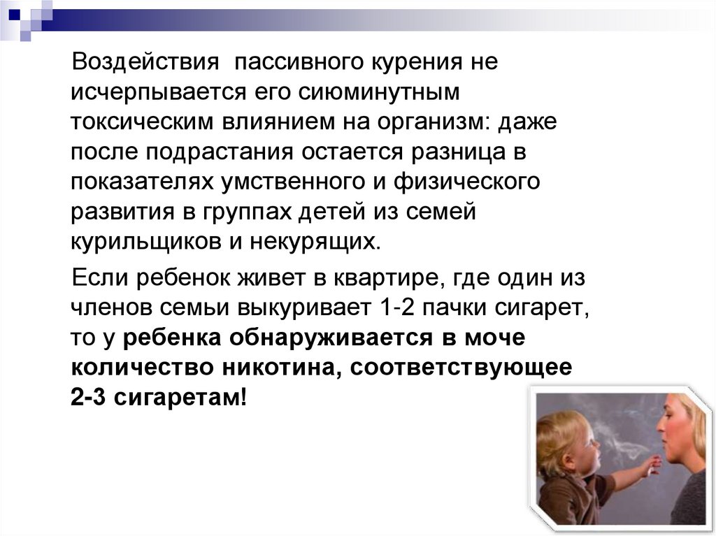Воздействия пассивного курения неисчерпывается его сиюминутным