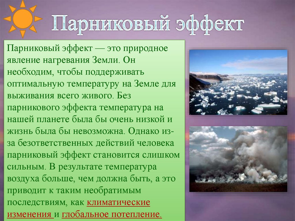 Парниковый эффект — это природноеявление нагревания Земли. Он