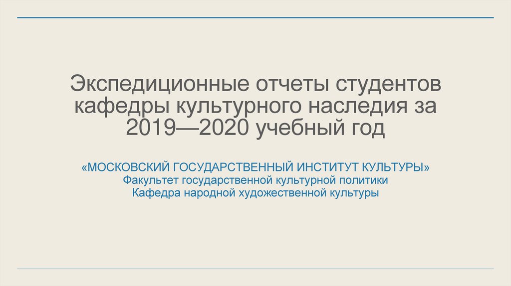 Экспедиционные отчеты студентовкафедры культурного наследия за