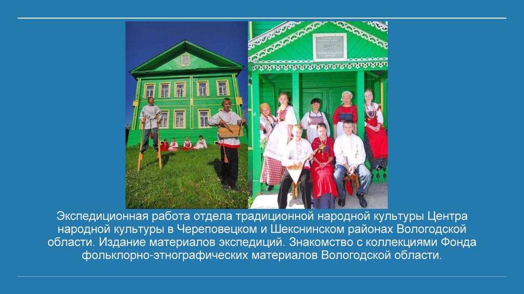 Экспедиционная работа отдела традиционной народной культуры Центранародной культуры в Череповецком и Шекснинском районах Вологодской