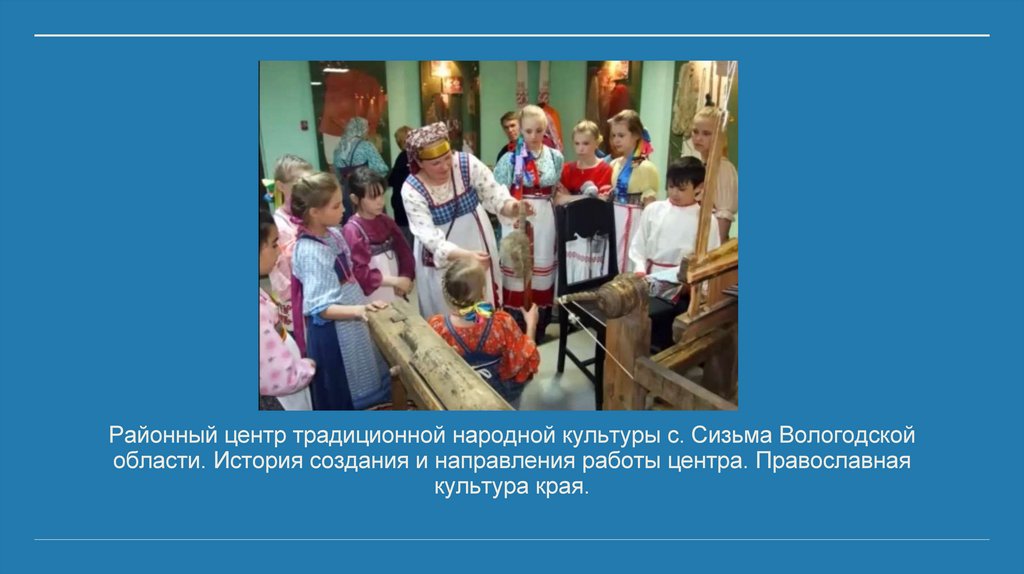Районный центр традиционной народной культуры с. Сизьма Вологодскойобласти. История создания и направления работы центра. Православная