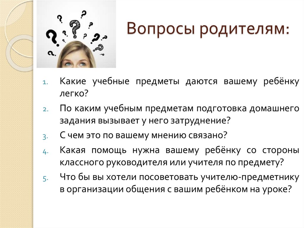 Вопросы родителям:1.