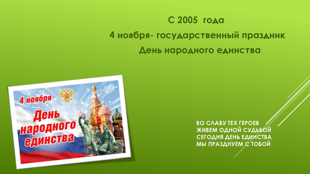 С 2005 года4 ноября- государственный праздник