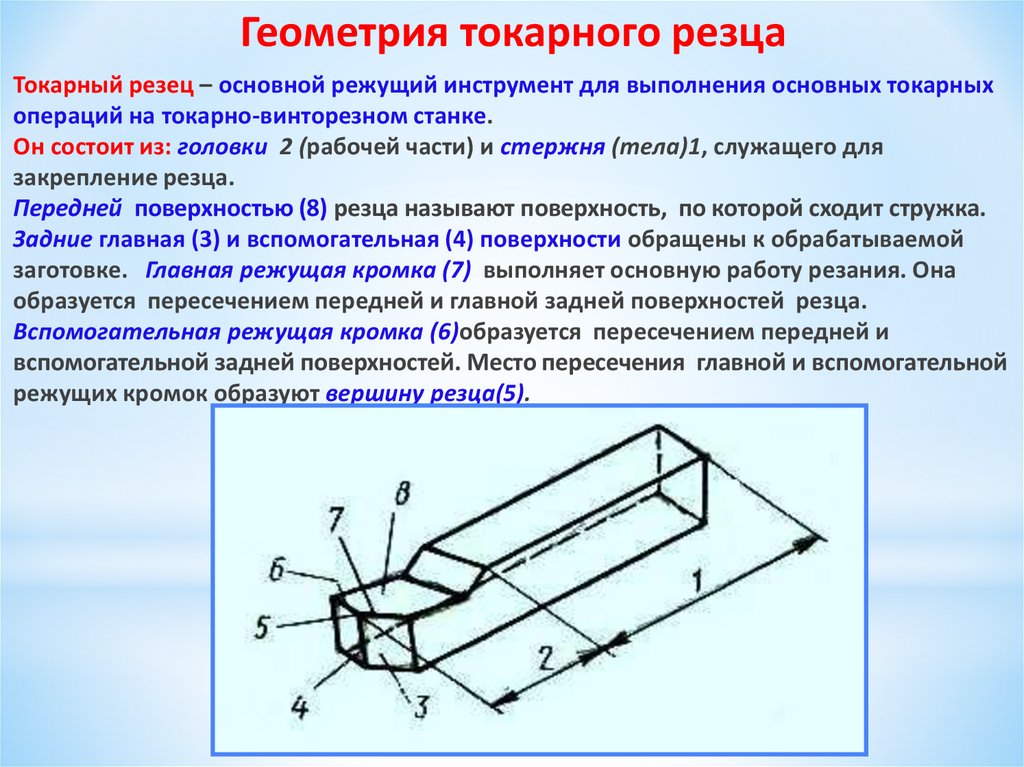 Геометрия токарного резцаТокарный резец – основной режущий инструмент для выполнения основных токарных