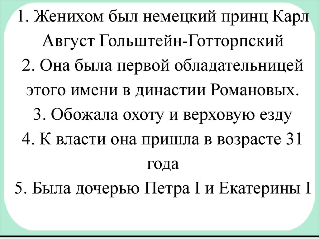 1. Женихом был немецкий принц КарлАвгуст Гольштейн-Готторпский