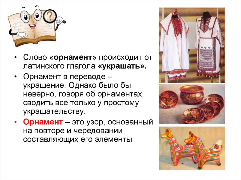 • Слово «орнамент» происходит отлатинского глагола «украшать».