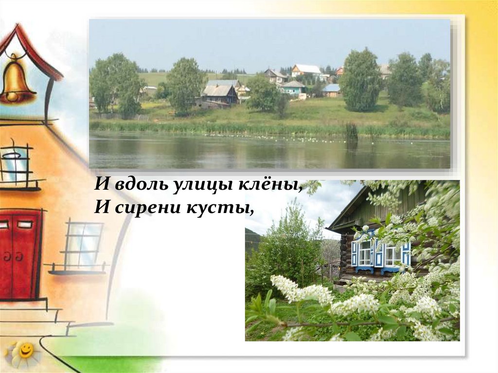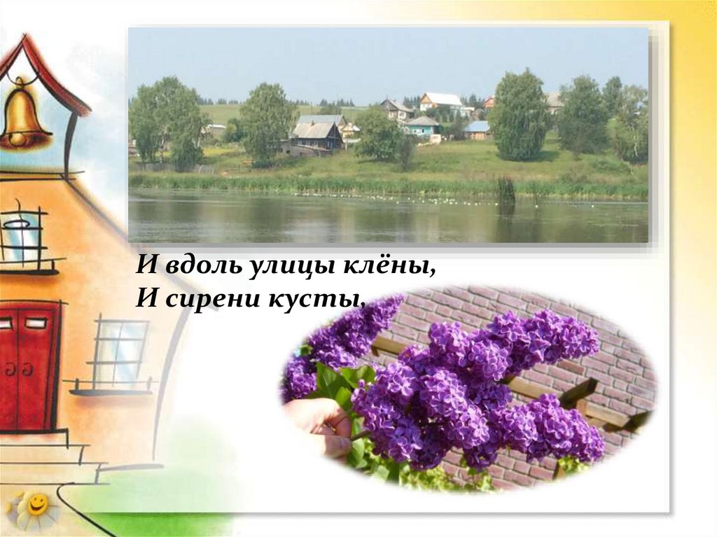 И вдоль улицы клёны,И сирени кусты,