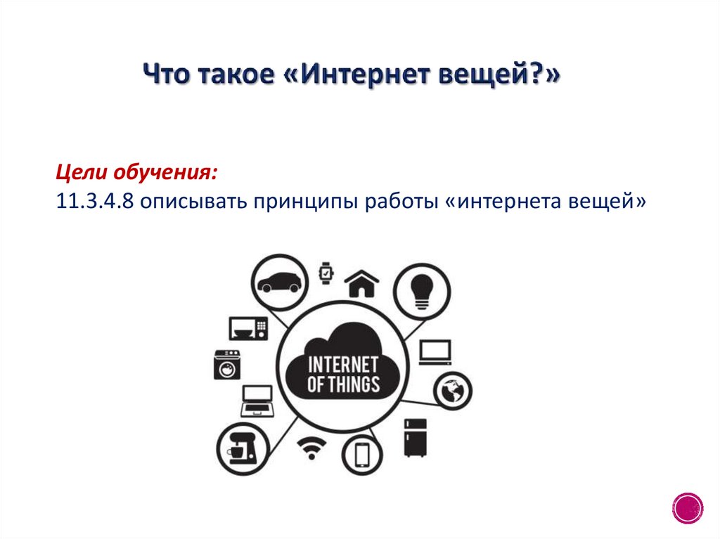 Цели обучения:11.3.4.8 описывать принципы работы «интернета вещей»