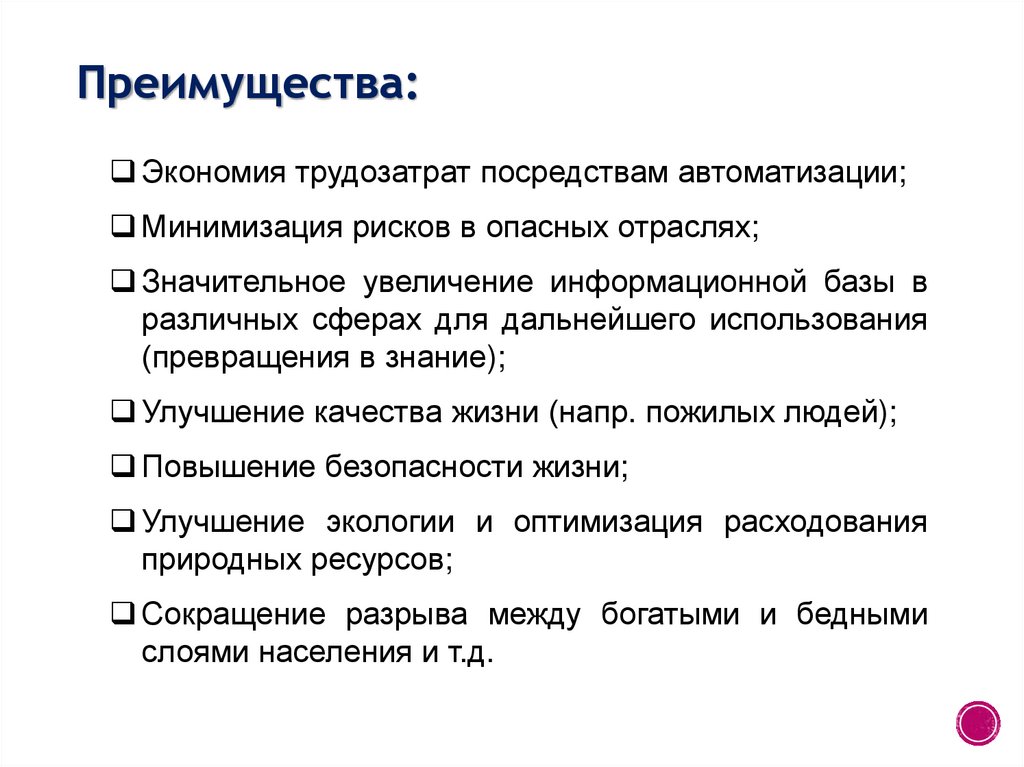 Преимущества:Экономия трудозатрат посредствам автоматизации;