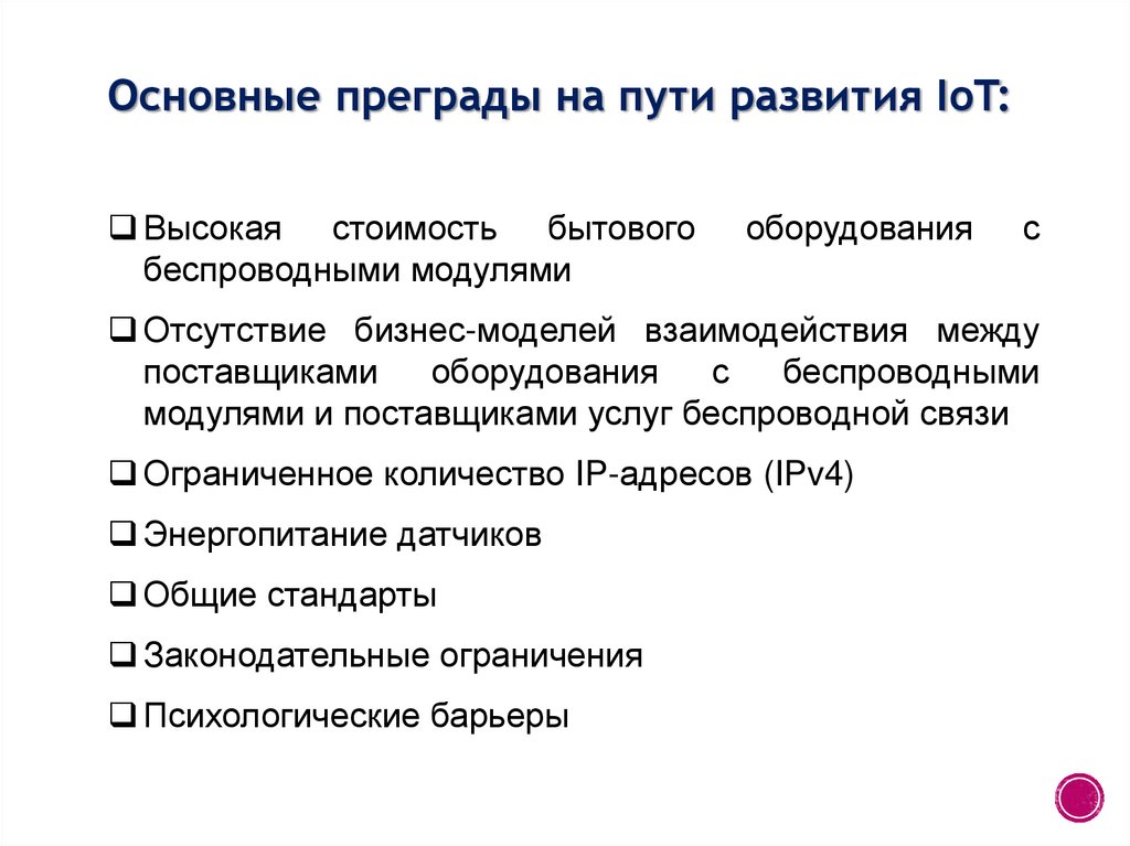 Основные преграды на пути развития IoT:Высокая стоимость бытового