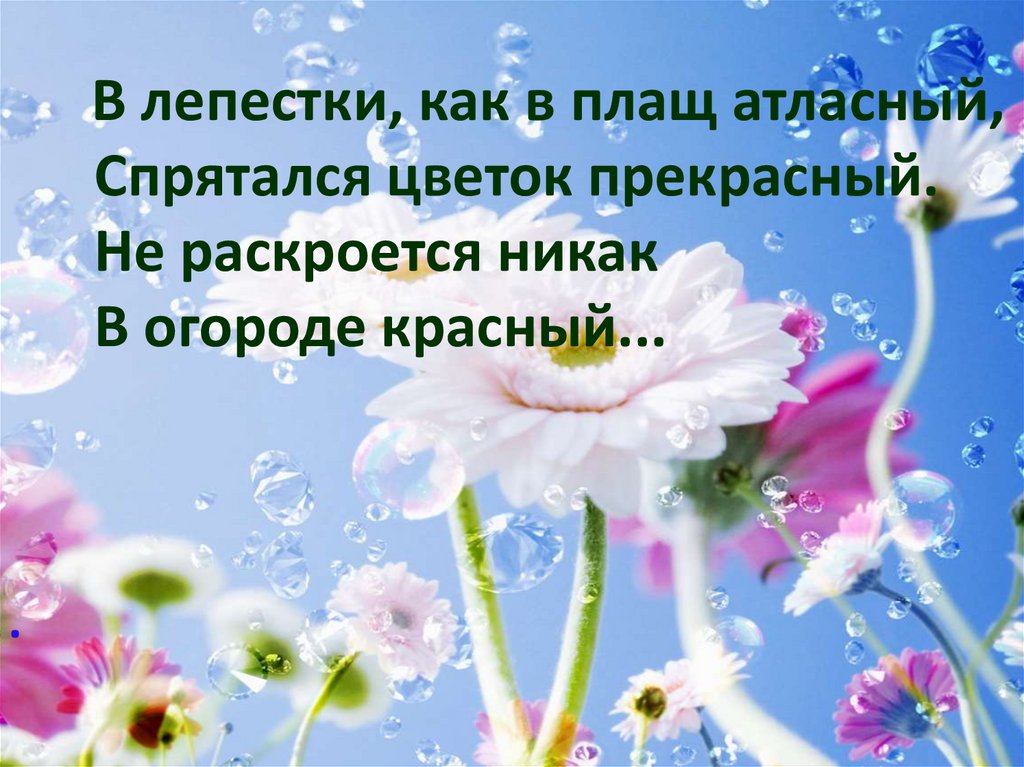 В лепестки, как в плащ атласный,Спрятался цветок прекрасный.