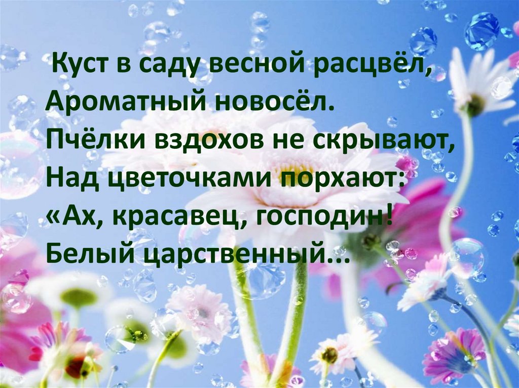 Куст в саду весной расцвёл,Ароматный новосёл.