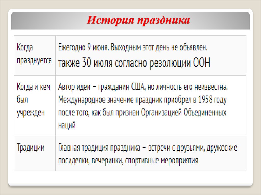 День друзей. История праздника