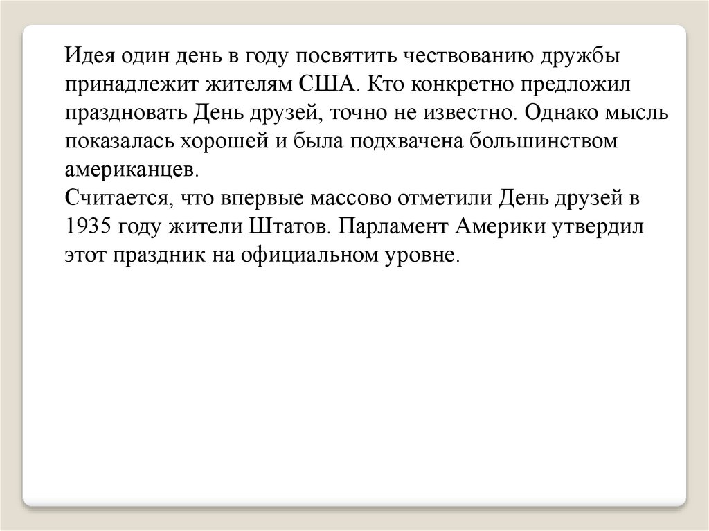 праздновать День друзей, точно не известно. Однако мысль