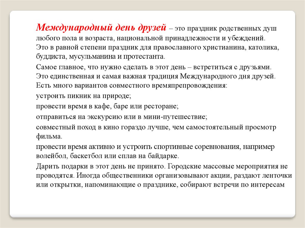 Это единственная и самая важная традиция Международного дня друзей.