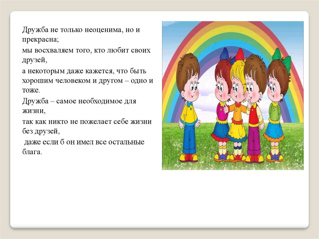 Дружба не только неоценима, но ипрекрасна;