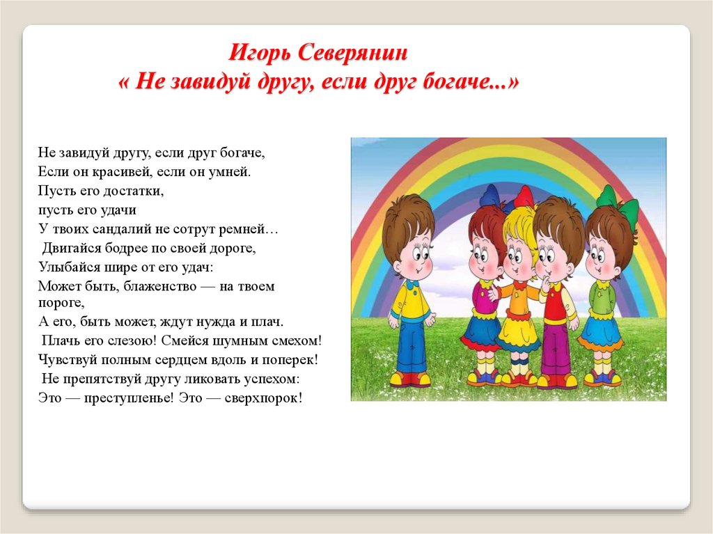 Игорь Северянин« Не завидуй другу, если друг богаче...»
