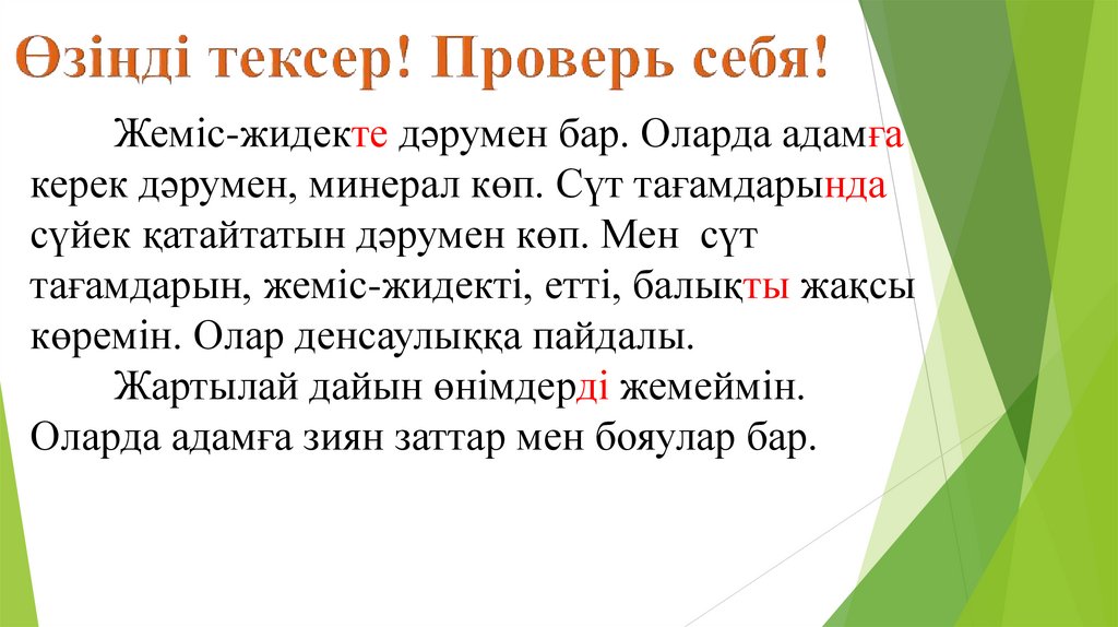 5. Мен жазда бақшадан жаңа терген жеміс-жидектерді жақсы көремін.