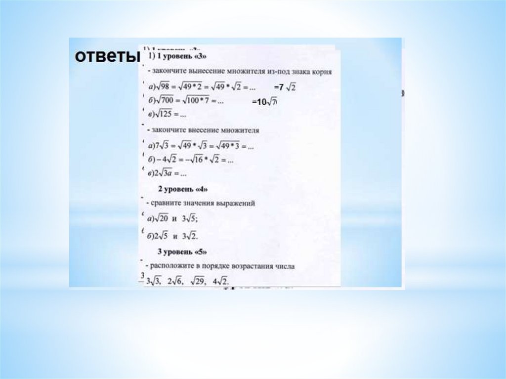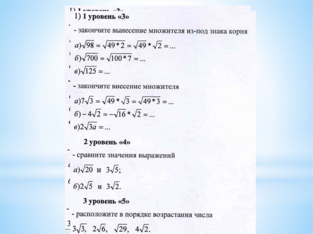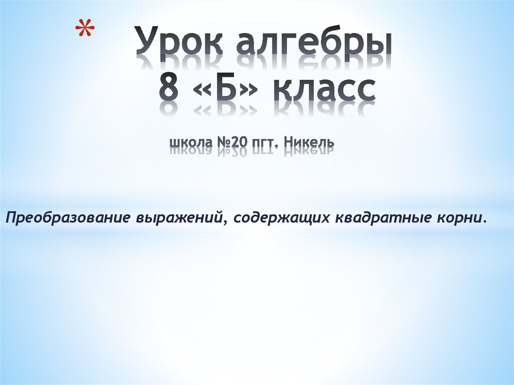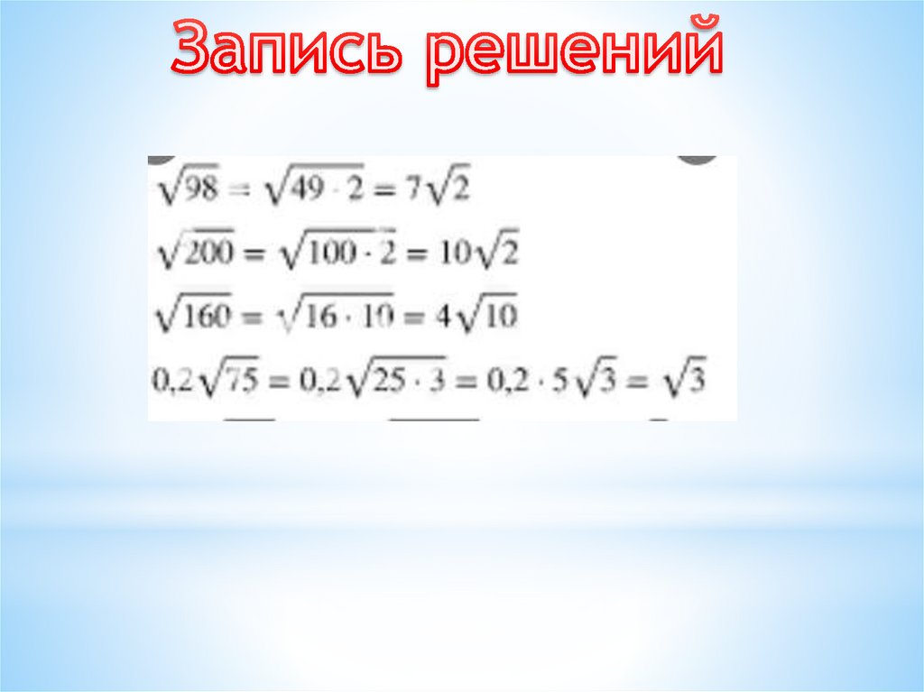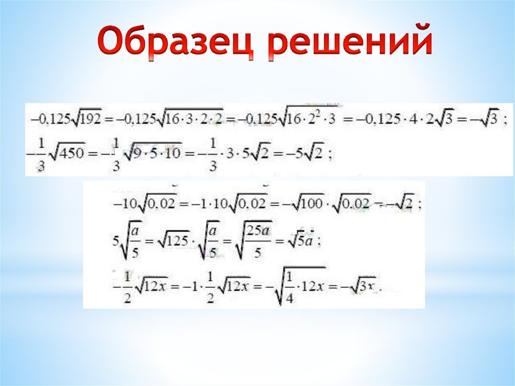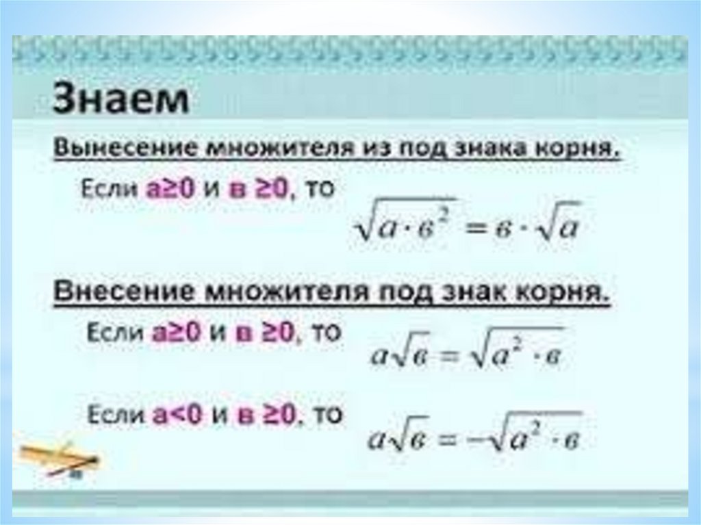 Преобразование выражений, содержащих квадратные корни.