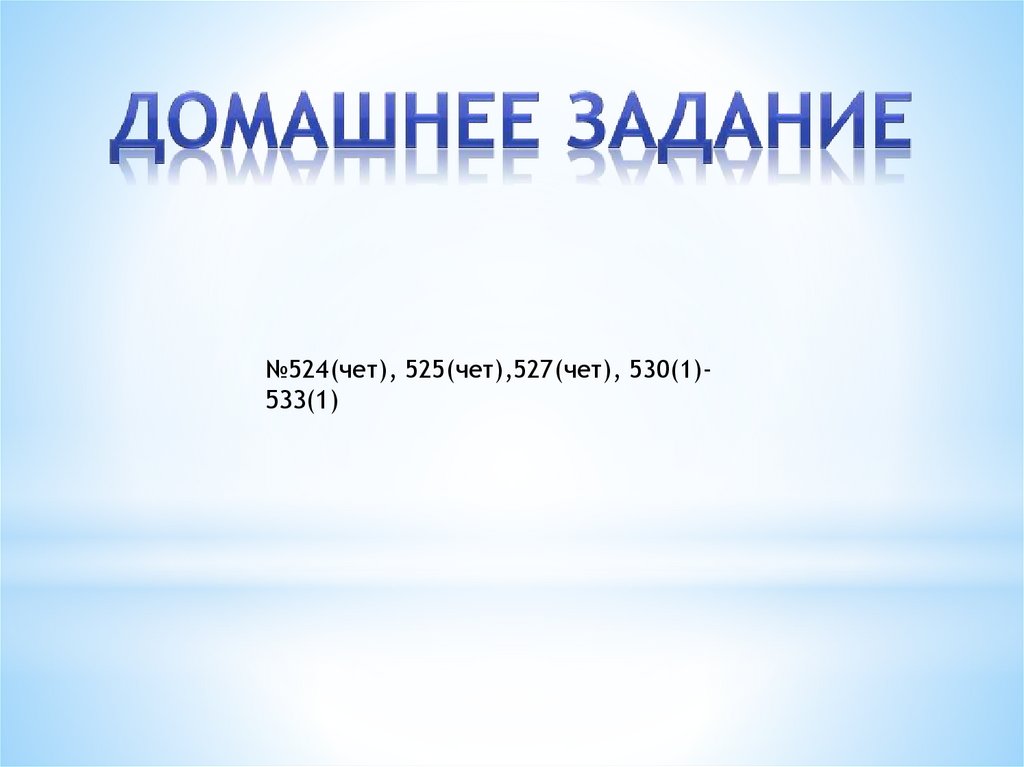 №524(чет), 525(чет),527(чет), 530(1)533(1)