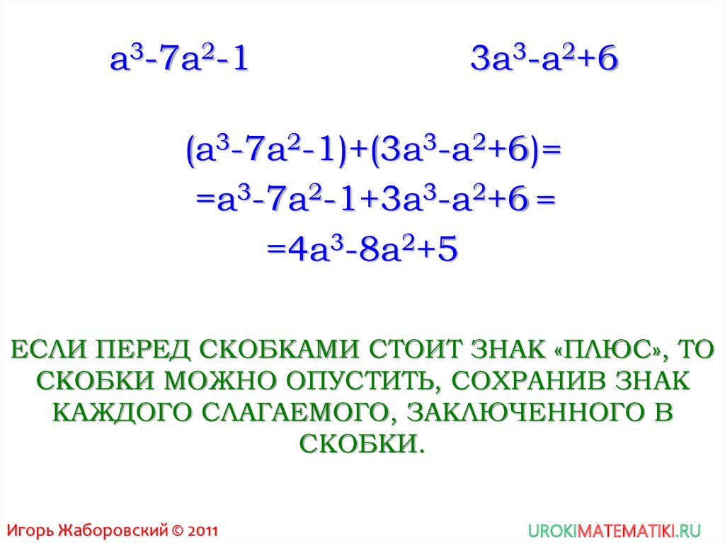 ЕСЛИ ПЕРЕД СКОБКАМИ СТАВИТСЯ ЗНАК«ПЛЮС», ТО ЧЛЕНЫ, ЗАКЛЮЧЕННЫЕ В СКОБКИ,