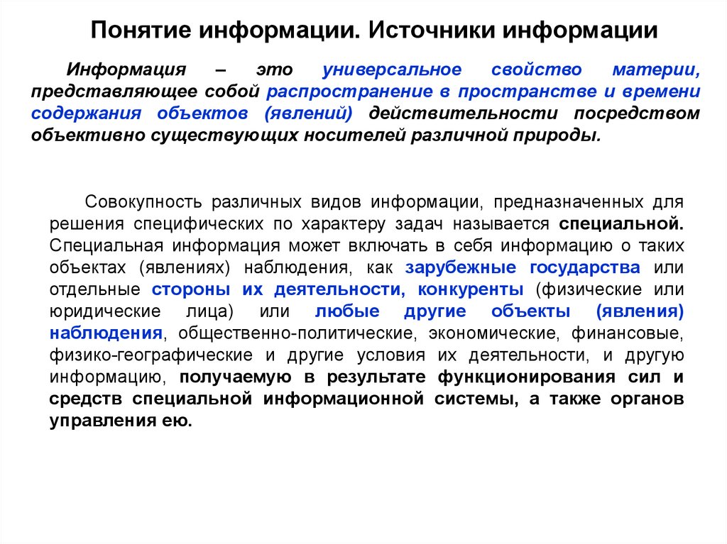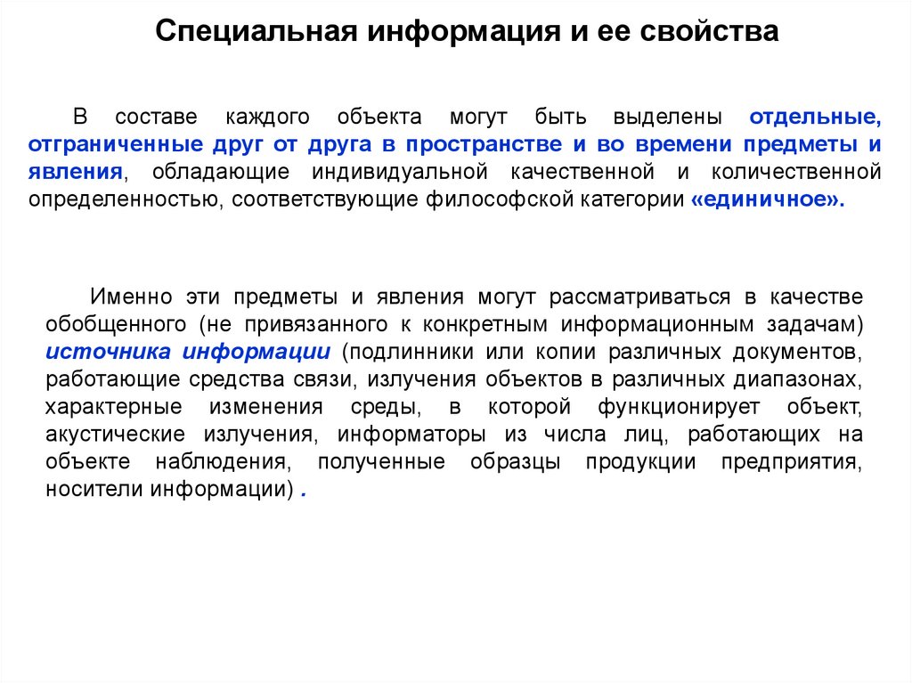 Специальная информация и ее свойства