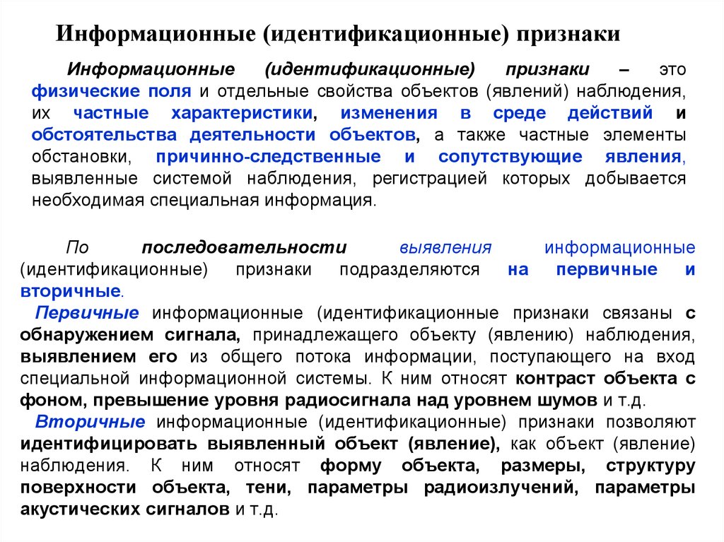 Информационные (идентификационные) признаки