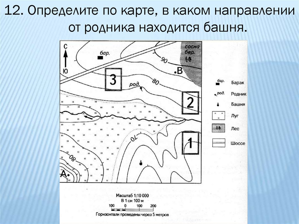 10. Определите по карте, в какомнаправлении от церкви находится башня.