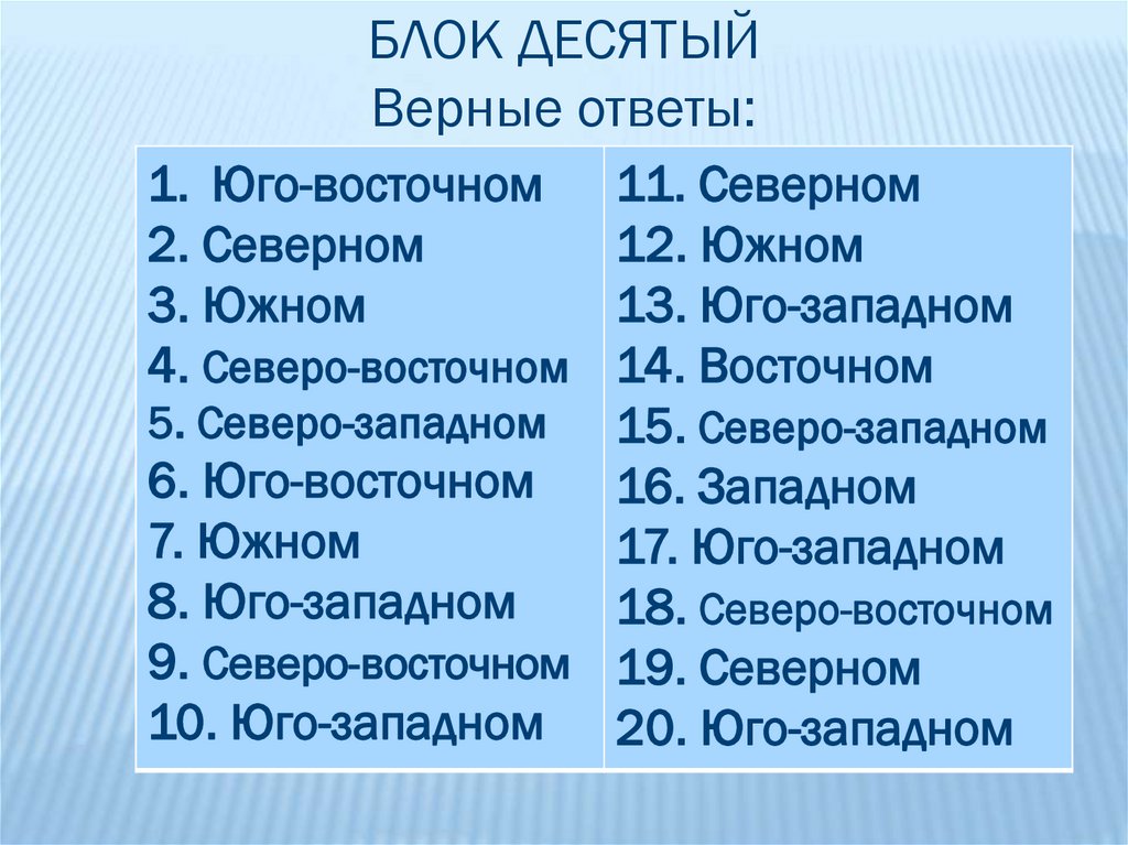 БЛОК ДЕСЯТЫЙВерные ответы: