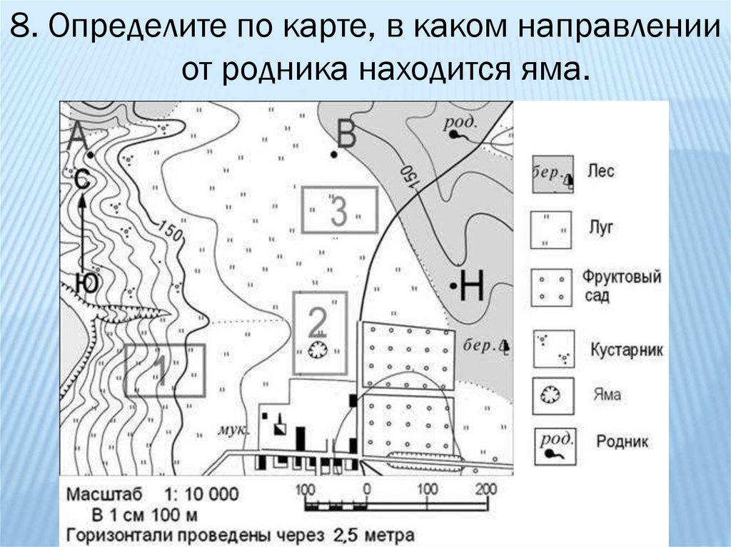 1. Определите по карте, в какомнаправлении от ямы находится колодец.