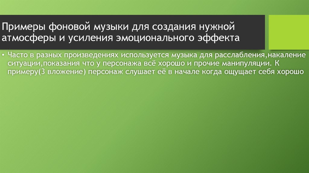 Примеры фоновой музыки для создания нужнойатмосферы и усиления эмоционального эффекта