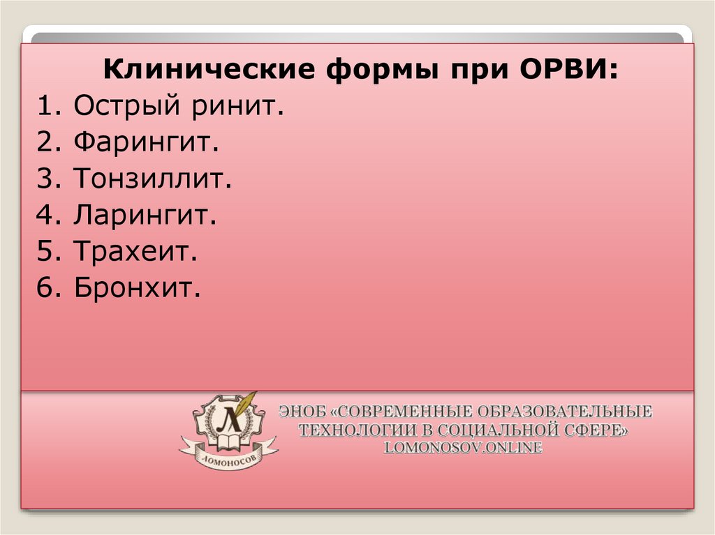 Клинические формы при ОРВИ: