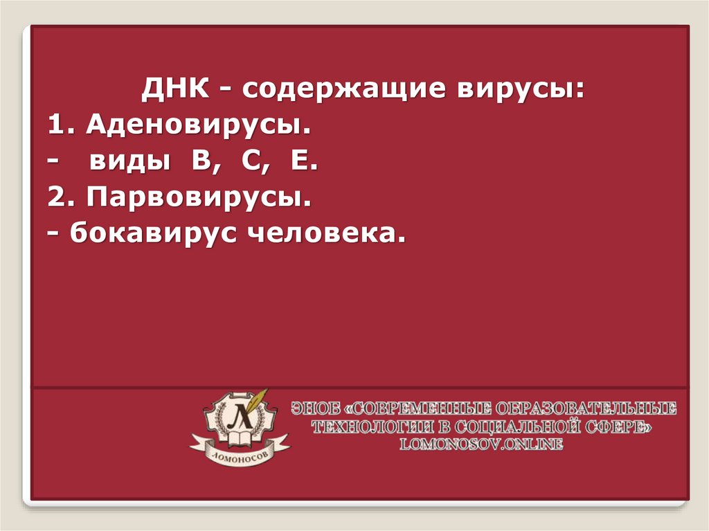 ДНК - содержащие вирусы:1. Аденовирусы.