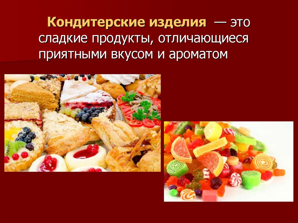 Кондитерские изделия — этосладкие продукты, отличающиеся