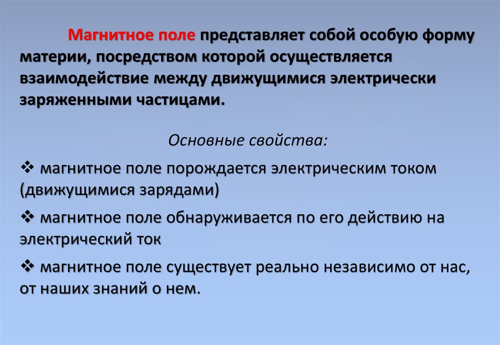 Магнитное поле представляет собой особую формуматерии, посредством которой осуществляется