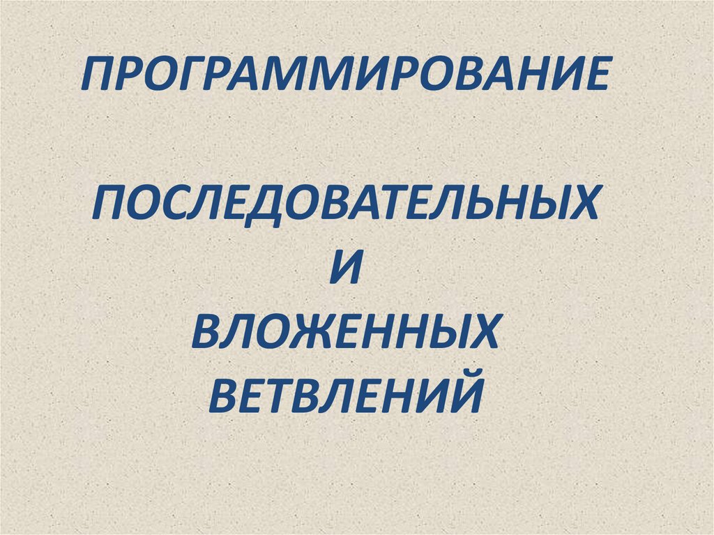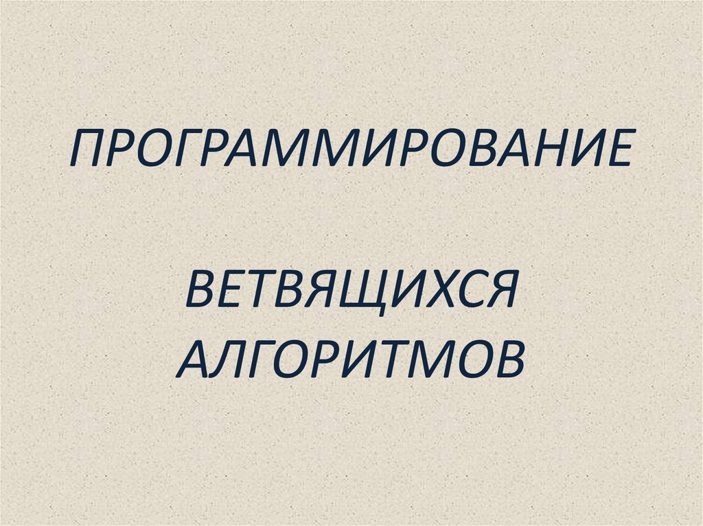 ПРОГРАММИРОВАНИЕВЕТВЯЩИХСЯ